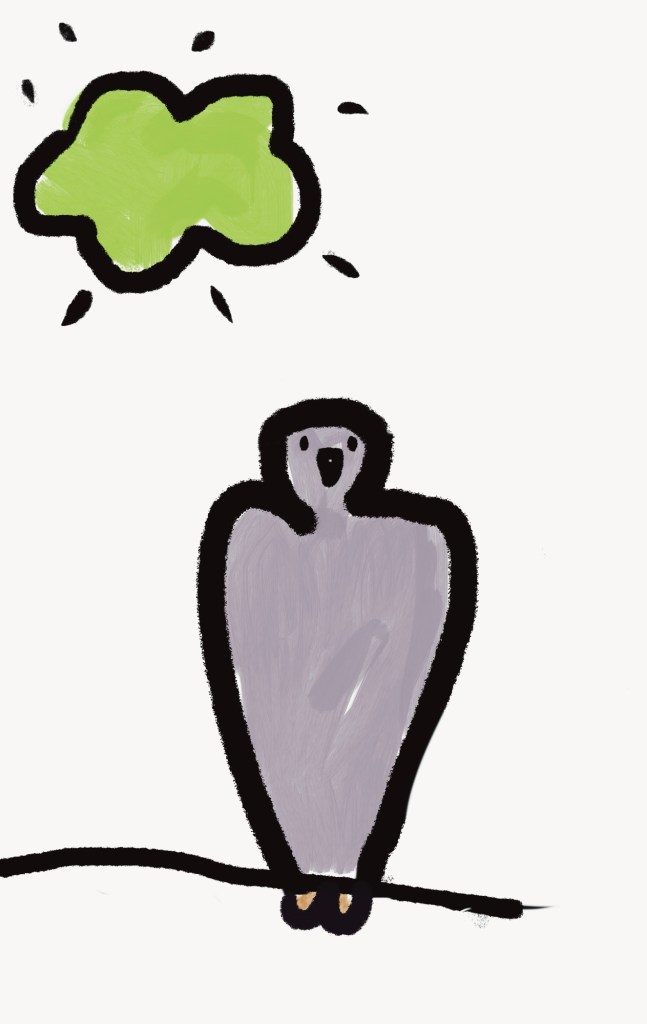 Entry 2. Sky looks off. Like seeds green with mold. I foraged for some leftovers at the neighbor’s house. It was still standing but the roof was gone. Strange the humans aren’t there either. 🕊️
