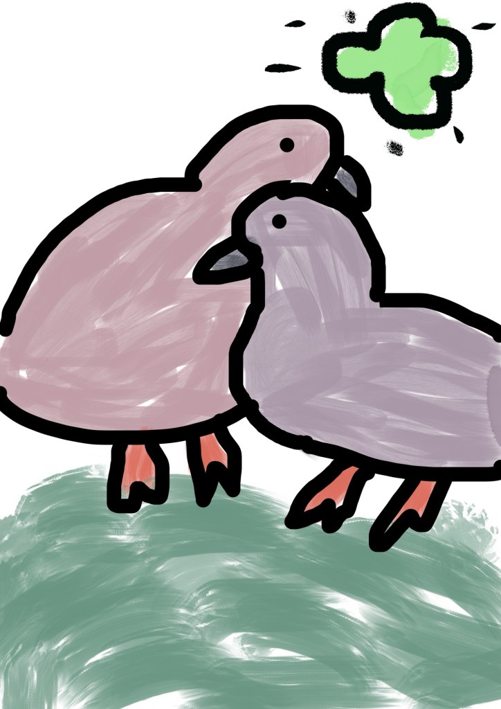 Entry 10. The wooden house humans go about their day completely normal. I eat leftovers from the chicken field or sometimes thrown by little humans. Then I saw her. A new pigeon. Shiny-feathered and plump. 🕊️
